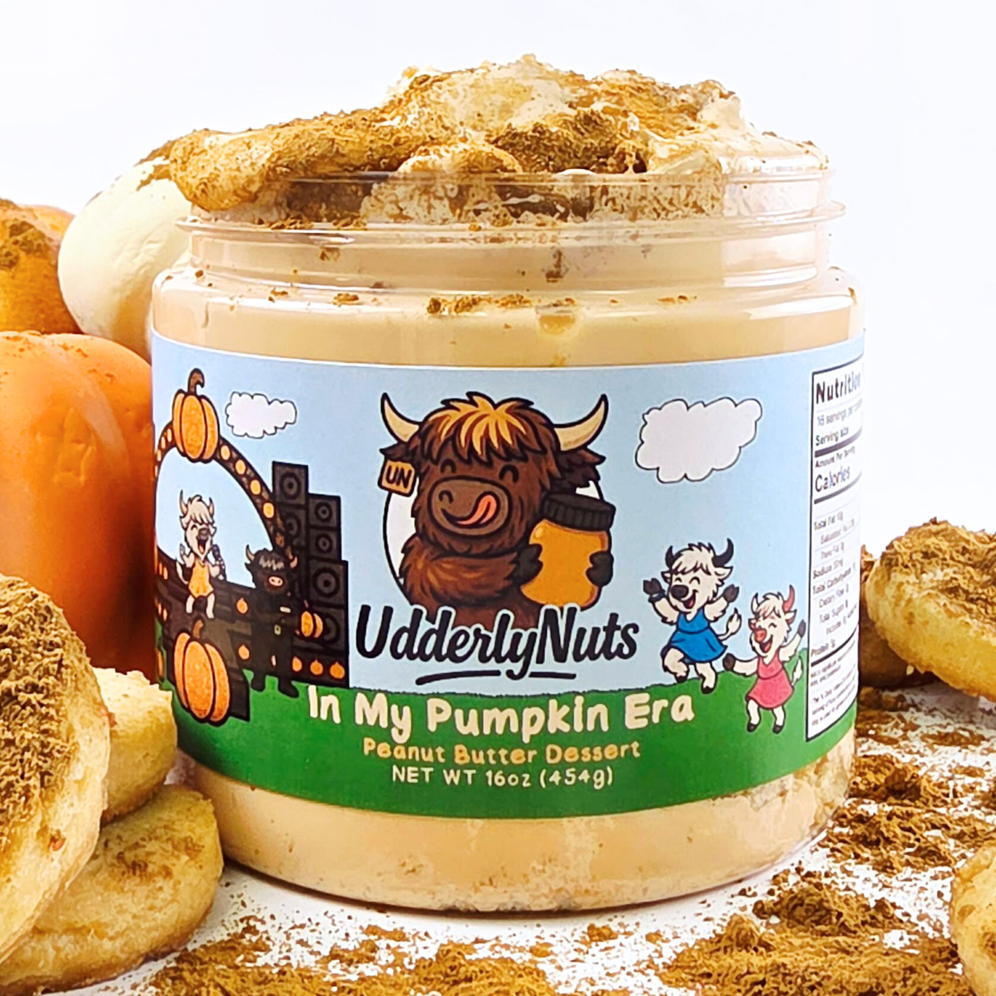 Get cozy with In My Pumpkin Era, white chocolate peanut butter swirled with pumpkin marshmallow fluff, pumpkin spice, and crunchy shortbread cookies. Dive into the perfect taste of autumn fun!