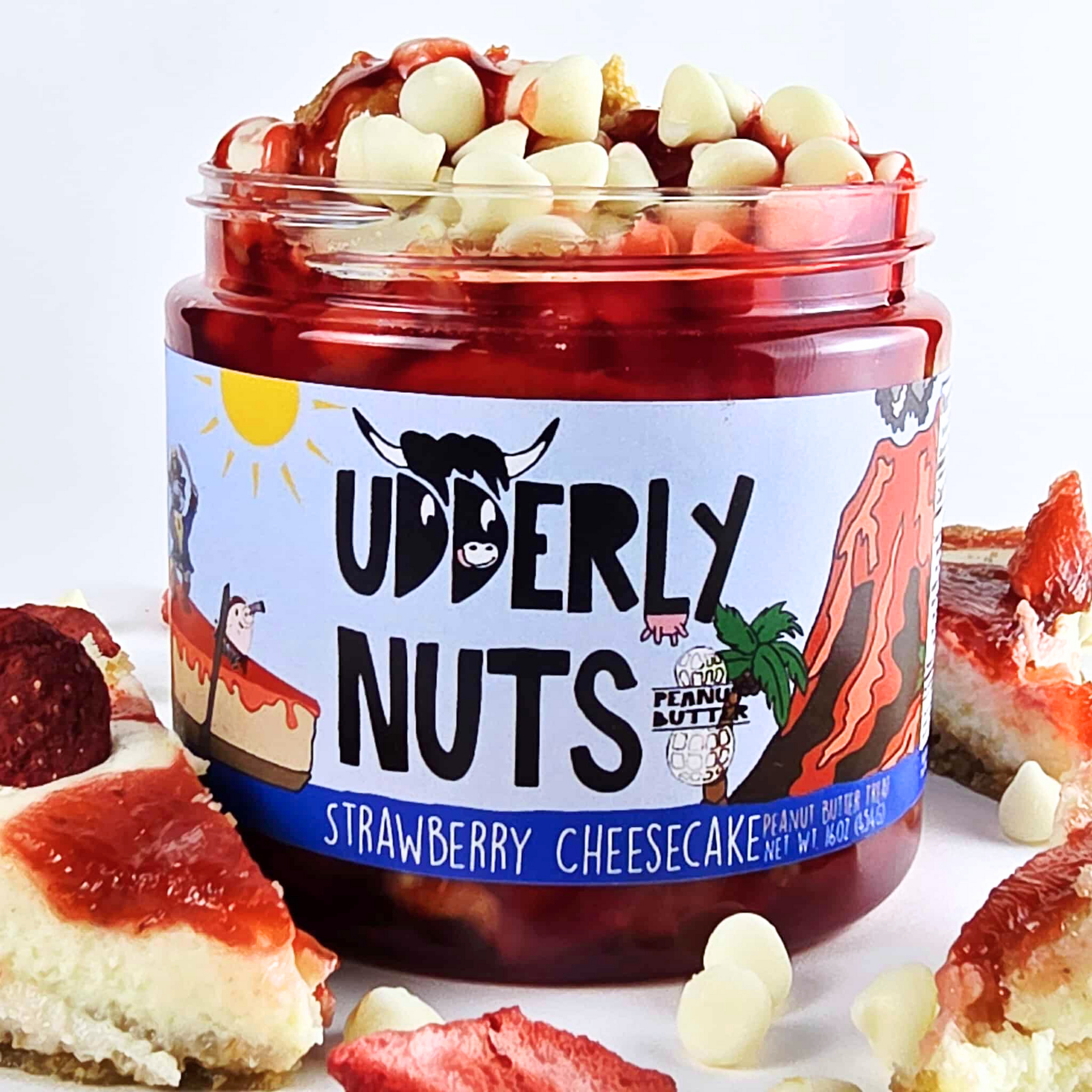 Experience the refined elegance of our Strawberry Cheesecake, where white chocolate peanut butter meets a delicate strawberry sauce and smooth cream cheese frosting. Crowned with white chocolate chips, this sophisticated blend offers a harmonious balance of flavors that elevates the classic cheesecake to a new level of indulgence.