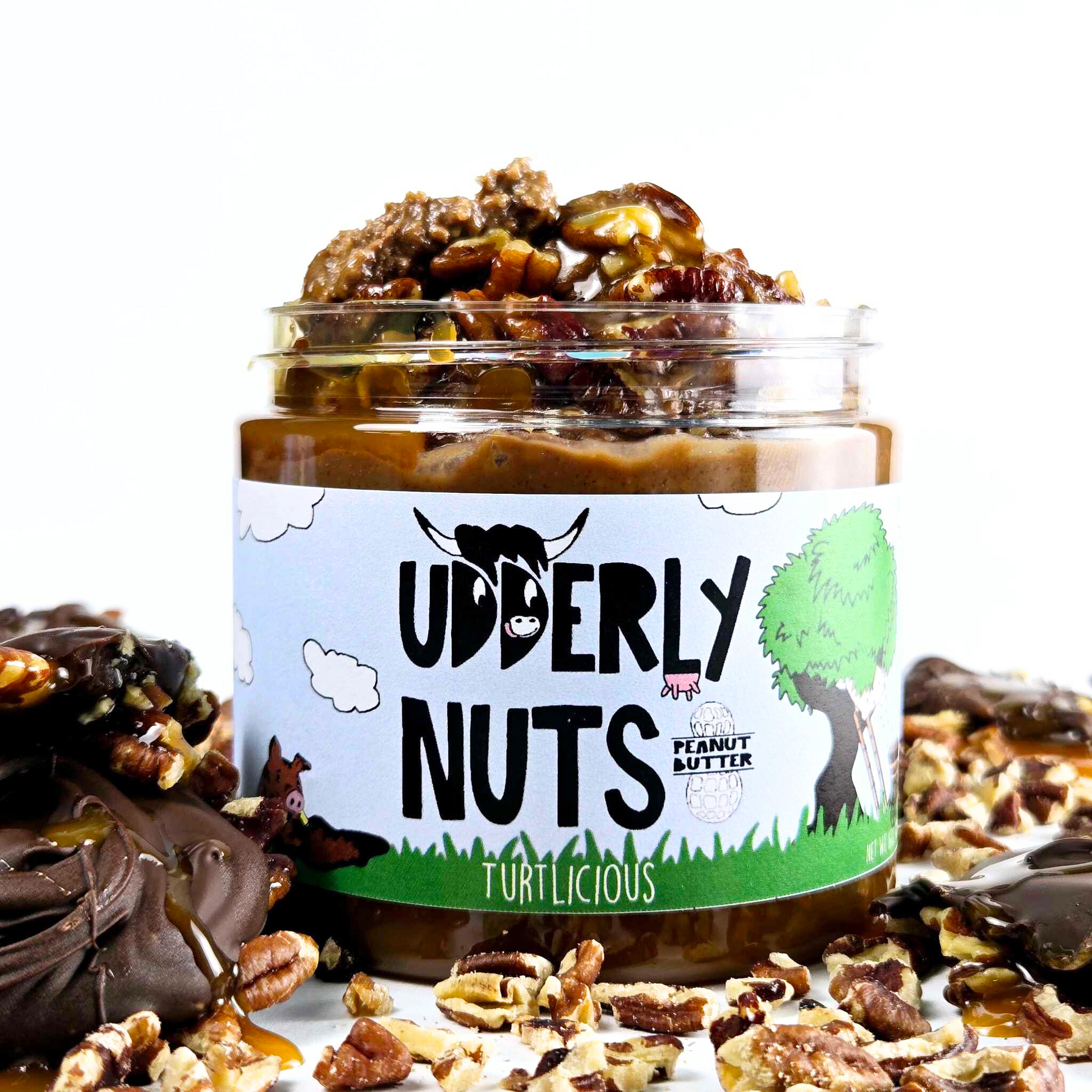 Experience the ultimate sweet and savory treat with Turtlicious. Our milk chocolate peanut butter base is perfectly swirled with rich caramel sauce and topped off with a generous helping of crunchy roasted pecans. Satisfy your cravings and tantalize your taste buds with every spoonful!